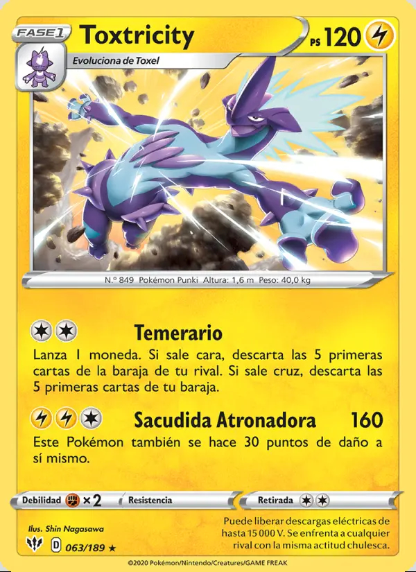 Lanza 1 moneda. Si sale cara, descarta las 5 primeras cartas de la baraja de tu rival. Si sale cruz, descarta las 5 primeras cartas de tu baraja.