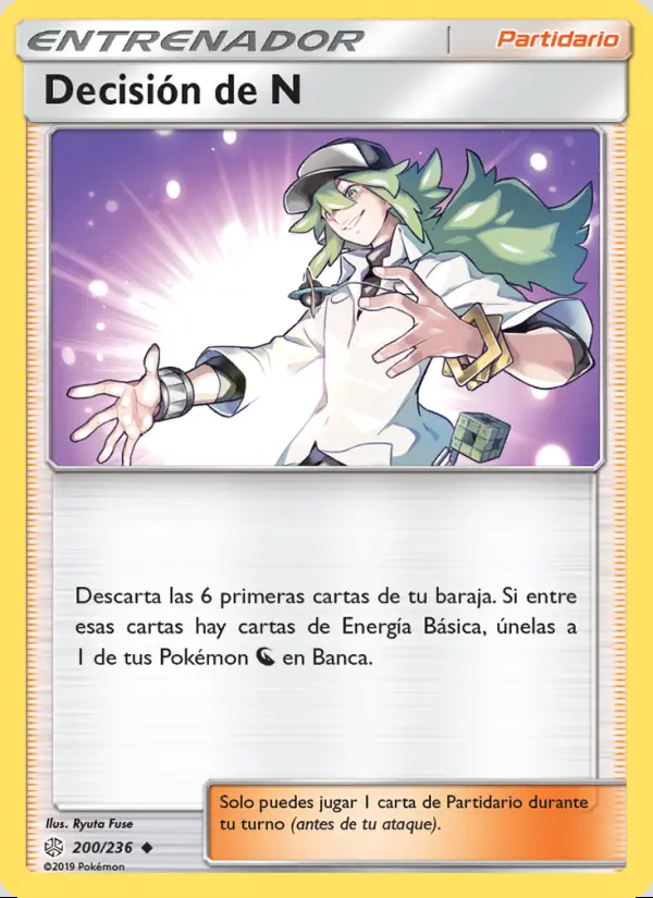 Descarta las 6 primeras cartas de tu baraja. Si entre esas cartas hay cartas de Energía Básica, únelas a 1 de tus Pokémon Dragon en Banca.